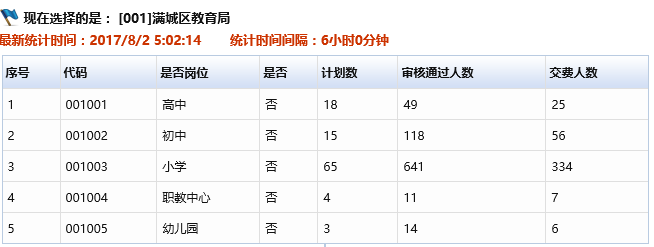 2017年8月1日保定市满城区教师招聘报名人数统计