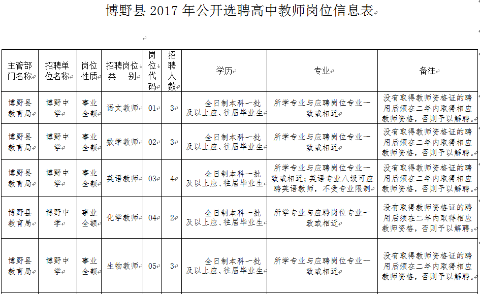 经县政府研究决定,2017年面向社会公开选聘高中教师25名。