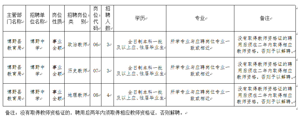 (三)年龄35周岁以下(1981年7月1日以后出生);全日制本科一批及以上学历的应往届毕业生,具有相应教师资格,所学专业与应聘岗位专业一致或相近;全日制研究生学历的原则上可不受年龄限制;英语专业八级可应聘英语教师,不受专业限制。没有取得高中教师资格证的,聘用后须在二年内取得相应教师资格,否则予以解聘。